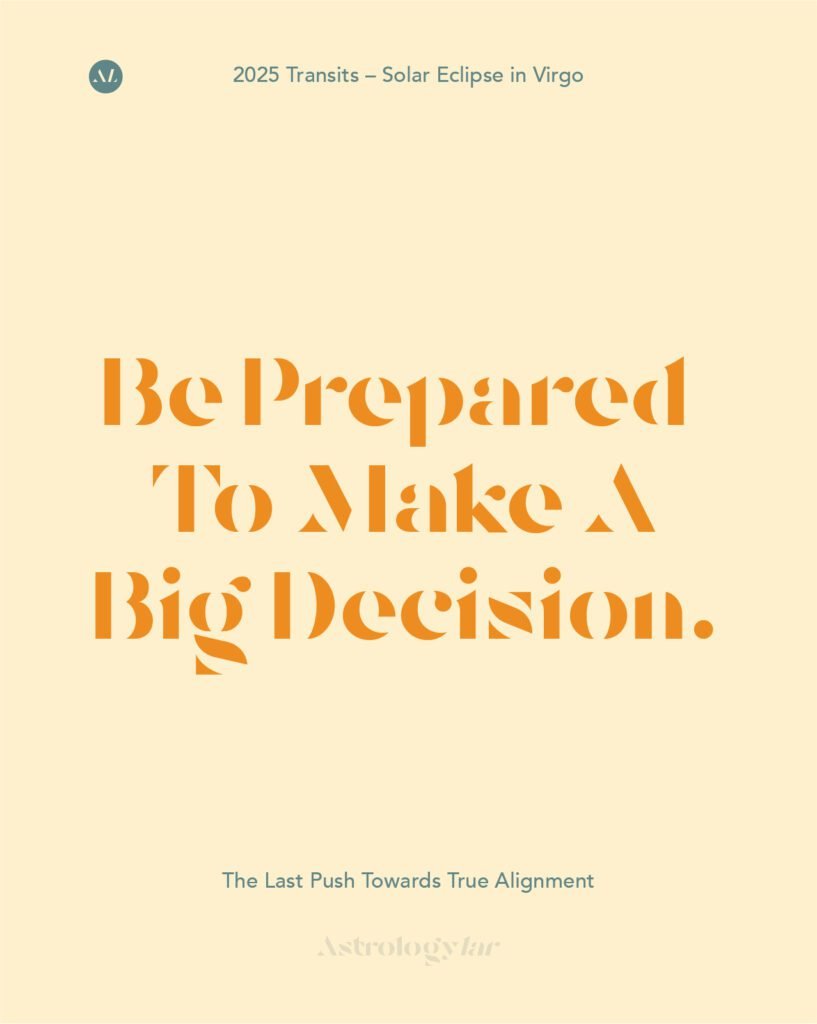 This decision is important as it’s trying to push you out of your comfort zone so that you can grow. Do not be stuck with what you’re used to and be ready for change. If still stuck in your old ways, there could be a crisis relating to whichever house you have virgo in, that will force you to release control because you have no other choice. To minimise or even circumvent it, embrace any change that presents itself or listen to an inner knowing of it being the right way to go about it. If the change doesn’t happen now, it will be harder later on.